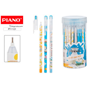 Ручка шариковая с чернилами на масляной основе: "PIANO КОКОС"; одноразовая; пластиковый цветной корпус с рисунком /ассорти/, цвет чернил-синий, 0,7 mm....