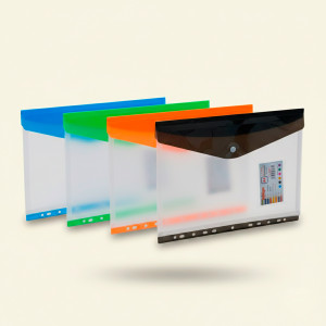 Папки-кнопки формата А4 — это функциональные конверты из пластика (обычно 120-180 мкм), предназначенные для хранения и переноски документов,что вмещает до 100-150 листов стандартной бумаги A4. ...