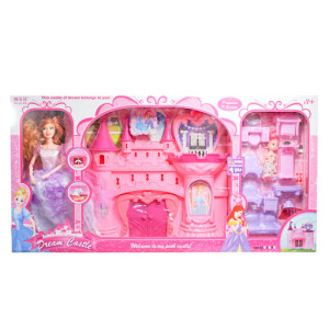 Игровой набор в виде замка, выполненного из пластмассы, со звуковым и световым эффектом. Кукла выполнена из пластика с подвижными руками на шарнирах. С рисованным, резиновым лицом. В комплекте: 13 предметов интерьера. Размер коробки: 67 х34 х 11 см...