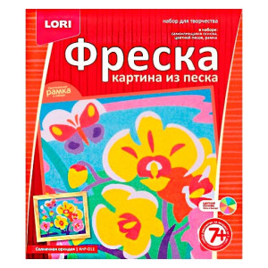 Комплекция набора: цветной песок, самоклеющаяся основа, рамка и подробная инструкция. Возраст: 3+.