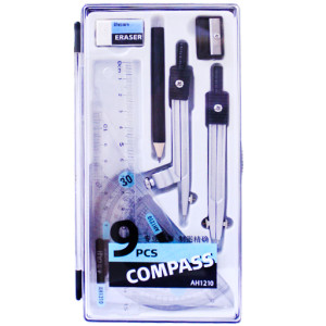 Набор для чертежных работ циркуль + мягкая стиралка + точилка и 3 линейки (Aihua) 1210