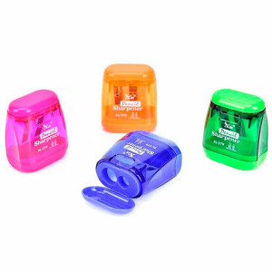 Точилка пластиковая из прочного пластика, с крышкой, с контейнером, цвета ассорти.