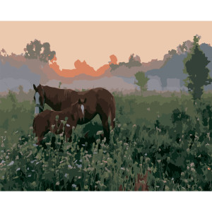 Картина по номерам 40*50 см YS-46950 Лошади. Разнотравье