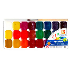 Акварель медовая "Луч" Классика (с европодвесом, набор 24 цветов и кисточкой)