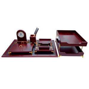 Набор настольный из 9 предметов из натурального дерева В комплект входят: - подкладка для письма - горизонтальный двойной лоток для документов - подставка для двух ручек - подставка для карандашей и ручек - нож для вскрытия корреспонденции -...